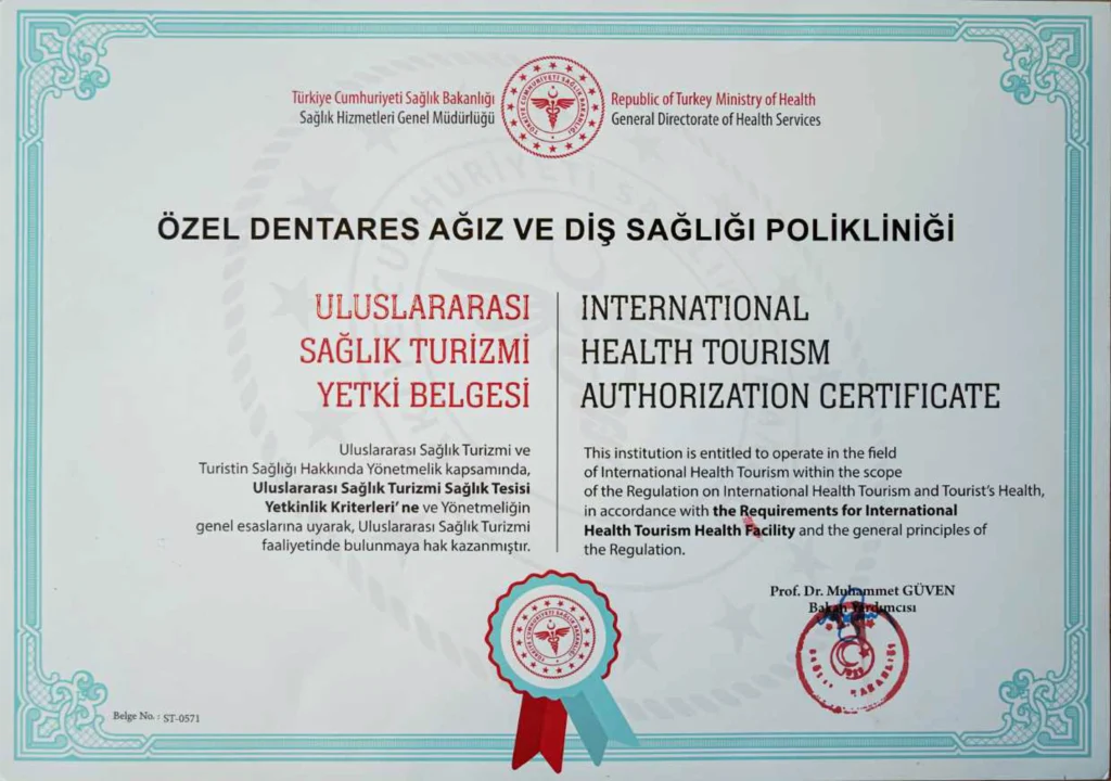 Dentares Smile Clinic is fully accredited in Turkish Ministry of Health and has all the rights and qualifications to provide Dental Treatments for international patients.